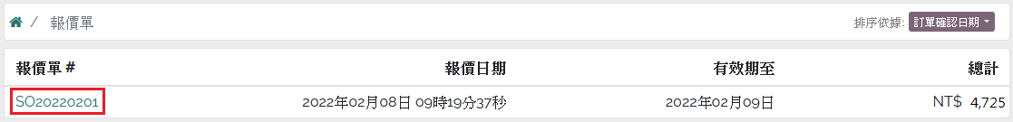 在您登入之後,攲器透過 Microsoft 365 或是 Google Workspace 確認您是雙方認定的交易代表人,您就可以直接線上確認報價,直接產生銷售訂單,這筆交易的相關事項,都可以在這裡查詢得到。確認報價的步驟如下: